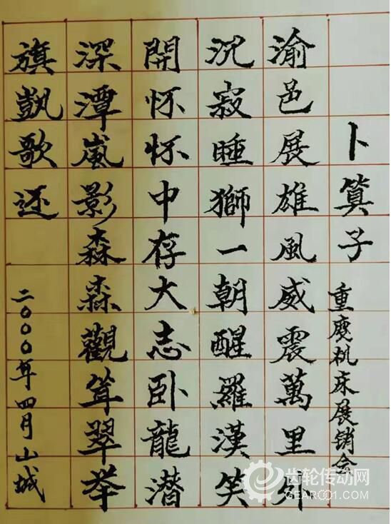 附:楊光平先生于2000年4月在重慶立嘉展上,作詞《卜算子》的原稿。20年前的行業現狀躍然紙上,清晰了模糊的記憶。