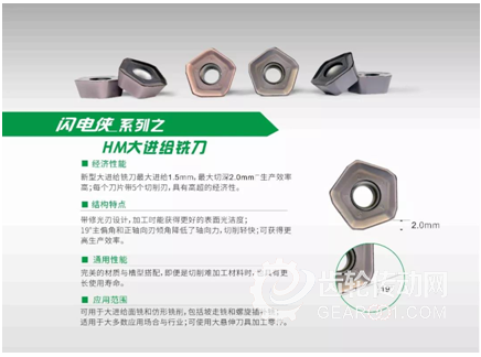 2、歐科億的新品閃電俠系列之HM大進(jìn)給銑刀可用于大進(jìn)給面銑和仿形銑削,包括坡走銑和螺旋插補(bǔ)銑;適用于大多數(shù)應(yīng)用場(chǎng)合和行業(yè);可使用大懸伸刀具加工零件。在實(shí)際使用案例中,刀具壽命提升效果明顯。此系列新品有雙面8個(gè)切削刃;曲線刃設(shè)計(jì)有效降低切削力;刃口鋒利,切削輕快;大角度修光刃可以在面銑時(shí)保證很好的表面質(zhì)量;最大切深可達(dá)6.5mm。獨(dú)特的螺旋刃設(shè)計(jì),垂直度好,最大切深可達(dá)13mm,大切深下,仍保持好的垂直度;經(jīng)濟(jì)性好,6個(gè)切削刃;自帶修光刃,工件表面質(zhì)量好;通用性好,用于P、M、K材料的面銑、方肩銑、槽銑。