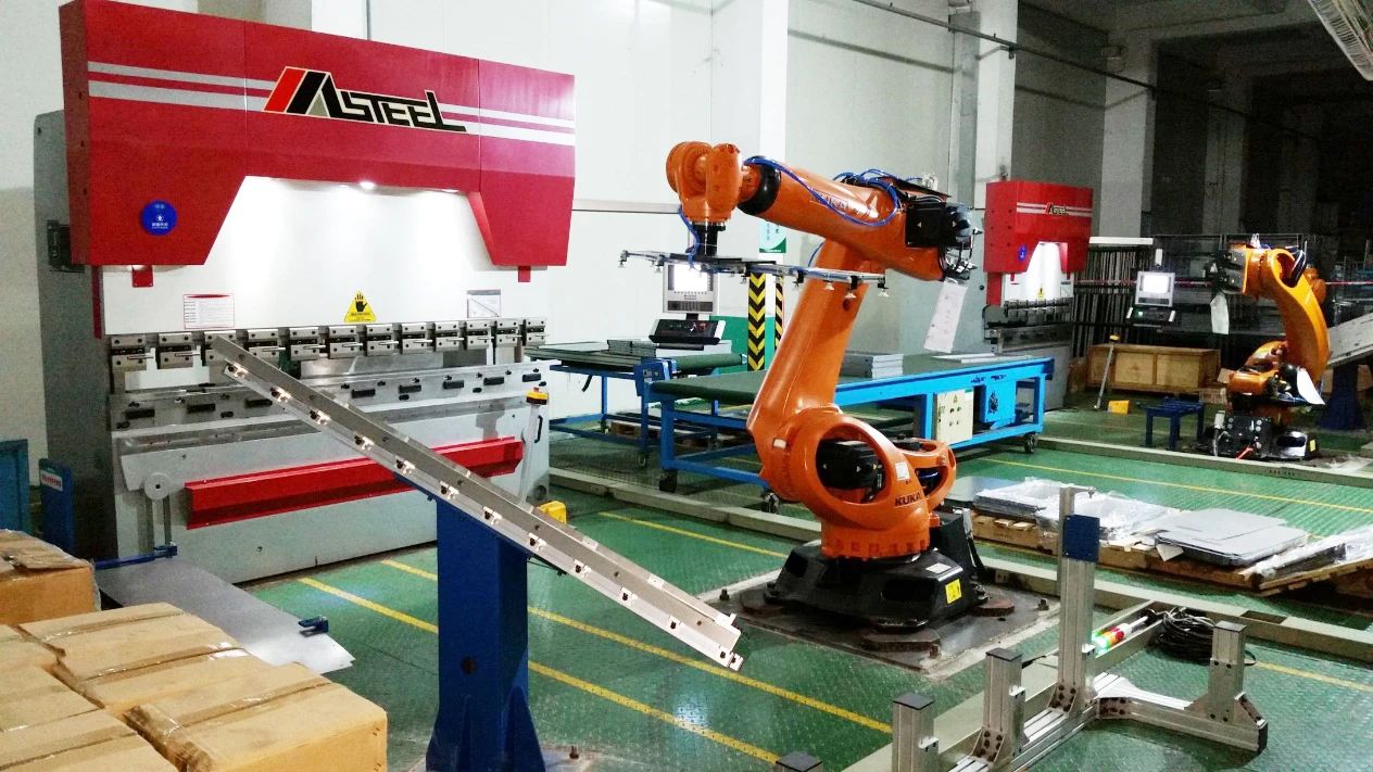 南通麥斯鐵的自動(dòng)折彎?rùn)C(jī)器人工作站MB11032R90,將折彎?rùn)C(jī)和機(jī)器人兩種設(shè)備合二為一,實(shí)現(xiàn)了拆垛、上料、折彎跟隨、碼垛等自動(dòng)折彎功能。通過(guò)TCP/IP的方式互聯(lián)互通,麥斯鐵機(jī)器人可以控制折彎?rùn)C(jī),使自動(dòng)折彎的操作更加簡(jiǎn)便和自如。