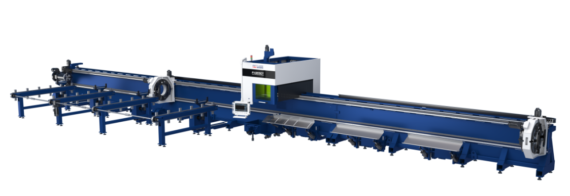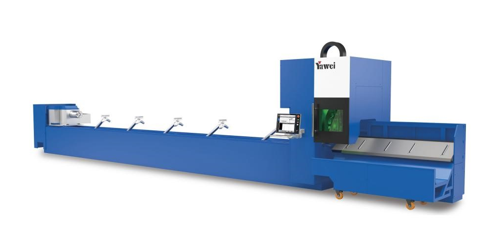 江蘇亞威機床股份有限公司YTF激光切管機。加工范圍圓管Φ50-Φ560mm,方管□50-400mm,卡盤夾持管材重量為1600kg,定位精度±0.05mm,重復(fù)定位精度±0.03mm。機床選用側(cè)掛式床身,方便搭配自動上下料結(jié)構(gòu),有利于各種管材的平行進出料;三卡盤設(shè)計,可實現(xiàn)“零”尾料加工;搭配擺動切割頭,可實現(xiàn)管材的坡口切割;自動化配套,提高整體加工效率,特別是超長管、重型管、大管徑管材的安全高效上下料。