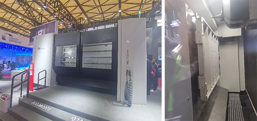 格勞博還展出了自主開發生產的緊湊型機器人單元GRC-R12和五軸聯動通用加工中心G150組成的產線,實現從生產規劃,監控和分析,到工件加工過程的可視化、透明化批量柔性生產,自動化工件搬運處理,最大工件重量2.5kg,最大工件高度85mm,每個抽屜最大承重100kg,可用抽屜尺寸600×400mm,最多抽屜6個。