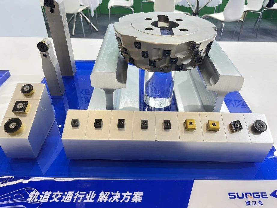 株洲鉆石切削刀具股份有限公司展出了軌道交通行業切削加工刀具解決方案,包括鐵路道岔加工用復雜型線銑削刀具,采用高性能精密磨削刀片,實現鐵路軌道高效加工。