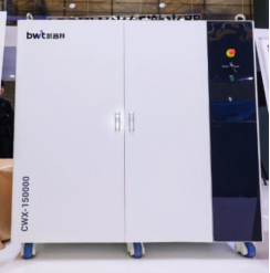 功率>150kW,中心波長1080±10nm,光譜帶寬為(3dB)<8 nm,輸出光纖芯徑200μm, 光束質量M²≤24,激光功率不穩定性為±1.5%。經中國計量科學研究院檢測,參照 GB/T 15175-2012 固體激光器主要參數測量方法,最大輸出功率150340W。