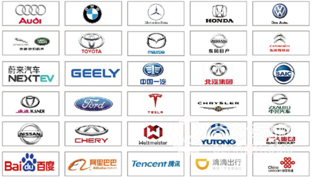 上汽通用、上汽大眾、上汽乘用車、東風雷諾、東風商用車、一汽大眾、一汽轎車、一汽解放、比亞迪、長安馬自達、標致雪鐵龍、廣汽豐田、廣汽本田、廣汽菲亞特、北京汽車、北汽福田、北汽新能源、長城、吉利、沃爾沃、奇瑞、江淮、福建奔馳、華晨、比亞迪戴姆勒、金龍、宇通、安凱、海格、海馬、寶沃、威馬、長城華冠、鄭州日產、上汽新能源、一汽新能源、樂視、蔚來汽車、車和家、和諧富騰、萬向、南京金龍、常隆、揚子江、五洲龍、長江汽車、康迪、知豆、藍越、四川野馬、前途汽車、重慶鑫源、河北御捷車業、威馬汽車、南車時代、小鵬電動、雅迪、雅駿新能源、眾泰、中大青山、恒通等。