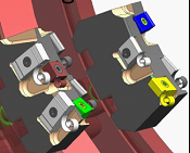 精加工座圈底孔和導(dǎo)管孔底孔的要求相對更高,孔徑一般為IT7, 有時(shí)要求 IT6,圓度小于10µm,導(dǎo)管孔對座圈孔的同軸度大約為20µm,表面質(zhì)量要求Rz = 2µm,角度公差+/- 0.25°,而一般以燒結(jié)合金或含銅燒結(jié)合金為加工材料。針對一拖專機(jī)加工的特點(diǎn),瓦爾特設(shè)計(jì)了新的解決刀具:該刀具使用雙桿驅(qū)動,大拉桿驅(qū)動滑塊,內(nèi)置小拉桿驅(qū)動鉸刀;精車氣門座圈倒角,機(jī)床主軸與滑塊2軸聯(lián)動,一個刀片可加工不同角度或圓弧;動平衡的設(shè)計(jì)以及輕盈刀體適合于高切削速度;前端伸出的多刃整體硬質(zhì)合金多刃鉸刀帶有內(nèi)冷孔。