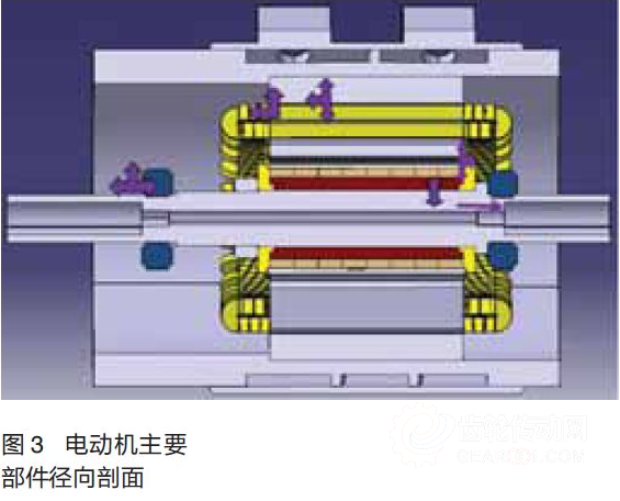 其總成內(nèi)部結(jié)構(gòu)如圖2所示的電動(dòng)機(jī)定子、轉(zhuǎn)子及變速器齒輪等結(jié)構(gòu)構(gòu)成。