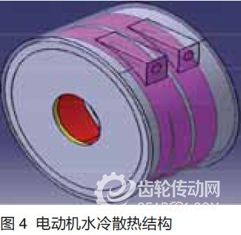 由于本文所述的電動(dòng)機(jī)結(jié)構(gòu)是與變速器集成一體化集成設(shè)計(jì),所以冷卻方式除了傳統(tǒng)的定子增加水冷套冷卻外,還可以考慮利用變速器內(nèi)部本身的被動(dòng)冷卻系統(tǒng)流動(dòng)的油液體對(duì)電動(dòng)機(jī)轉(zhuǎn)子軸心進(jìn)行冷卻,但是該種方案就面臨很多問(wèn)題,例如變速器內(nèi)部運(yùn)轉(zhuǎn)的潤(rùn)滑油的流量與壓力是否足夠,是否能使之在電動(dòng)機(jī)轉(zhuǎn)子內(nèi)部運(yùn)轉(zhuǎn)流動(dòng)起來(lái)、電動(dòng)機(jī)轉(zhuǎn)子進(jìn)行油冷卻是否效果明顯等。而接下來(lái)將對(duì)該兩種方案進(jìn)行具體溫度場(chǎng)分析和可行性分析。