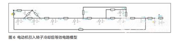 作為整車驅(qū)動(dòng)單元和動(dòng)力傳輸單元的集成結(jié)構(gòu),其有效地控制總成結(jié)構(gòu)的溫度變化和溫差將是提高整車性能指標(biāo)的有效手段之一,所以需盡可能地利用總成結(jié)構(gòu)中能夠利用的冷卻資源。而在總成結(jié)構(gòu)中,變速器或差速器本身的運(yùn)轉(zhuǎn)將自供冷卻模式即被動(dòng)冷卻系統(tǒng),在集成結(jié)構(gòu)中,電動(dòng)機(jī)與之主要匹配界面為轉(zhuǎn)動(dòng)部件,如能把被動(dòng)冷卻系統(tǒng)中的油冷系統(tǒng)引入到電動(dòng)機(jī)轉(zhuǎn)動(dòng)部件中即轉(zhuǎn)子驅(qū)動(dòng)軸中,這將會(huì)大大降低電動(dòng)機(jī)轉(zhuǎn)子軸的溫差,從而達(dá)到減輕電動(dòng)機(jī)定子的水冷要求,即可有效的整體降低電動(dòng)機(jī)溫升,最終可達(dá)到電動(dòng)機(jī)效率提高和功率密度的提高等性能指標(biāo)。本節(jié)將針對(duì)在電動(dòng)機(jī)定子水冷的基礎(chǔ)上,增加引入變速器或差速器油冷系統(tǒng)進(jìn)入電動(dòng)機(jī)轉(zhuǎn)子軸心的熱管理冷卻方案,利用熱阻網(wǎng)絡(luò)法等效模型計(jì)算分析出電動(dòng)機(jī)各零部件的溫度場(chǎng)變化情況。