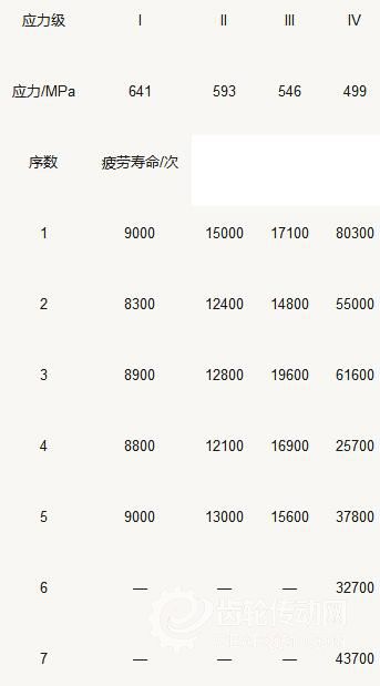 深層滲氮齒輪在短壽命區的成組法測試數據如表6所示。
