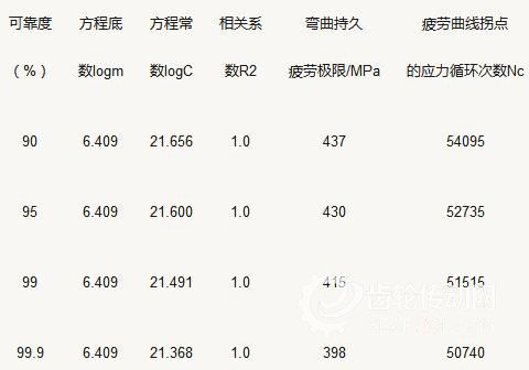 表4 淺層滲氮齒輪彎曲疲勞方程參數及彎曲疲勞極限(95%置信度)
