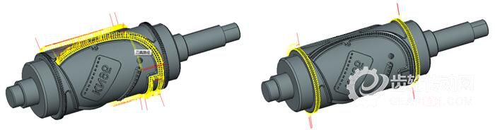 在加工切刀口時,一般使用“五軸形狀偏置精加工”呈環(huán)繞形加工, R角刀分層切削效率低下,且表面效果不佳。優(yōu)化后采用“五軸輪廓加工”使用成型刀分層加工,大大的提升了加工效率與表面質(zhì)量。切刀口優(yōu)化前后刀具路徑如圖11所示。
