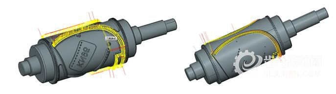 壓花齒數(shù)量眾多,一般在400個齒左右,使用“五軸形狀偏置精加工”效率低下、刀具壽命低下,且跳刀較多。優(yōu)化后利用hyperCAD-S軟件進行軌跡輪廓線構(gòu)建,再采用“五軸輪廓加工”,以走輪廓線上的方式進行程序編寫,生成刀路軌跡有以下優(yōu)點: