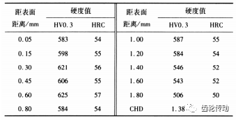 表2 齒頂硬度檢測數值