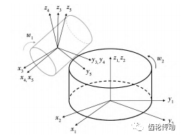 圖 1 滾刀和齒輪的空間相對位置與運動關系