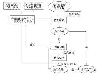 周力提出了一種高速干式滾齒工藝參數優化方法,如圖 16 所示,滾刀單刃切削加工仿真可為參數優化提供了現實依據,確定了合理的優化工藝參數,開展滾刀多刃切削仿真對工藝參數優化具有重要意義。劉磊等建立了高速干式切削性能綜合評價模型,基于模糊綜合評價方法,獲得了干式切削工藝性能評價最優值,干式切削工藝性能等級為一級,有利于工藝參數優化的進行,提升其綜合性 能。劉海江等建立了關于最高生產率的目標函數,并提出了優化切削參數模型,有利于優化滾刀的結構設計,可以快捷、準確地制作出滾刀三維結構,生產效率得到大幅提高。