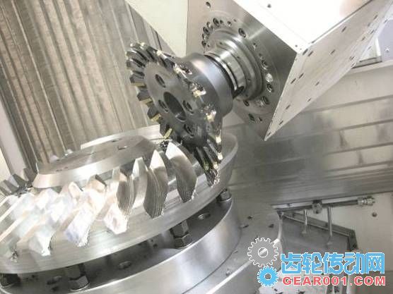 在使用可轉位圓刀片打開齒槽后,再采用新型銑削刀具概念加工齒側面。刀具類型可分類為中間工序加工用刀空心銑刀和鐘形銑削刀具。銑刀軸的安裝角可調,并且銑削刀具輪廓呈細長狀,這樣就能加工出各種牙側角和模數。凸凹兩種齒側面可以采用同一把兩側安裝有刀片的刀具加工而成。如果刀具僅一側配有刀片,以便增加有效刀片數(并由此提高進給率),則可節省相當多的時間。 所需的更多換刀只會增加少量的時間。