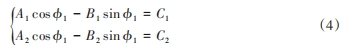 式中:m21為蝸桿和齒輪的傳動比;n1x1,n1y1 和 n1z1為蝸桿的法矢量在相應坐標軸上的分量。