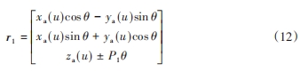 式中:u, θ為參數;“±”分別對應右旋和左旋螺旋面;P1 為蝸桿刀具的螺旋參數。