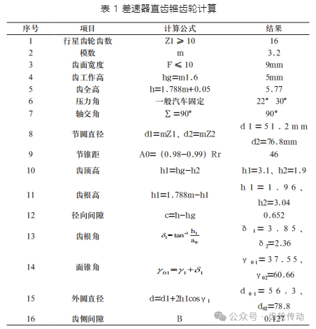 差速器直齒錐齒輪計(jì)算