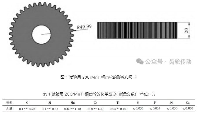 試驗用 20CrMnTi 鋼齒輪的尺寸如圖 1 所示,化學成分如表 1 所示。試驗流程為裝料→清洗→真空滲碳和淬火→清洗→低溫回火→檢驗。