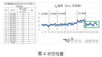 (4)在砂輪及修整器使用壽命剩余 1/4 時(shí),應(yīng)增加機(jī)床、夾具及工件的檢測(cè)頻次,因砂輪及修整器后期精度會(huì)有所下降,這時(shí)機(jī)床及夾具精度出現(xiàn)不合格或在邊緣狀態(tài),也會(huì)導(dǎo)致在磨齒加工時(shí)齒面ffa 出現(xiàn)不穩(wěn)定現(xiàn)象。