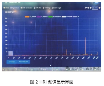 HRI 的頻譜界面采用實時監(jiān)控畫面,如圖 2 所示,其中橫坐標(biāo)為頻率 / 階次,可通過設(shè)定按鈕進(jìn)行切換,兩者的換算關(guān)系是: