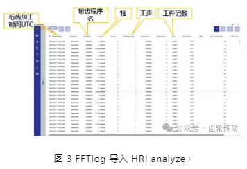 FFTlog 文件導(dǎo)入到 HRI analyze+ 后如圖 3 所示,每組 FFT 文件包含了近 2 h 的所有零件數(shù)據(jù),可通過時間或者工件記數(shù)標(biāo)簽找到需要分析的數(shù)據(jù)段。