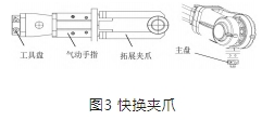 另外,機器人末端夾具使用快換裝置設(shè)計,可以針對不同的零件使用不同的拓展夾爪,實現(xiàn)快速換爪,大大縮短工具更換時間,提高生產(chǎn)效率。該裝置由兩部分組成, 分別是主盤和工具盤。主盤一般安裝在機器人手臂上, 工具盤則安裝在需要更換的夾爪上,其結(jié)構(gòu)如圖3所示。
