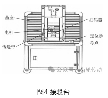 接駁臺由基座、電機、傳送帶、耐磨條、掃碼器等部分組成。由電機驅(qū)動,帶動同步帶運動進行傳送物料。結(jié)構(gòu)示意圖如圖4所示。