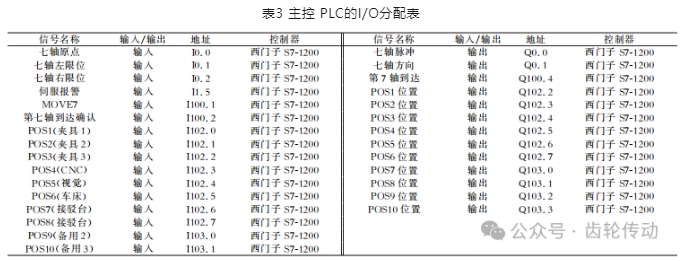 PLC控制過程簡單來說就是將外部輸入信號轉(zhuǎn)換為外部設(shè)備能夠識別的電信號,從而控制外部的執(zhí)行機構(gòu)。要實現(xiàn) PLC與其它設(shè)備之間能夠準確、穩(wěn)定和高效地進行數(shù)據(jù)交換和通信,就要基于通信協(xié)議合理進行各硬件的 I/O 接口設(shè)計。根據(jù)各硬件的輸入輸出信號的需求分析, 包括來自傳感器的模擬量和數(shù)字量輸入信號,以及向執(zhí)行器發(fā)送的模擬量和數(shù)字量輸出信號,選用相應的輸入輸出模塊,并進行了地址分配,遵循電氣連接與布線規(guī)范,并將在系統(tǒng)搭建完成后進行全面測試與驗證。主控 PLC 的 I/O分配如表3。
