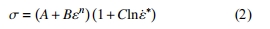 Johnson-Cook(JC)模型是最為常用的反映材料動態性能的本構模型,國內外關于高速沖擊、爆炸沖擊、彈丸侵徹等大應變率的仿真均廣泛采用此模型。對于激光沖擊強化這種大應力大應變率的行為,JC 模型是適用的,JC 模型流動應力如式(2)所示: