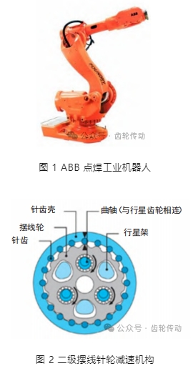 工業機器人在目前工業中應用眾多如圖 1 所示。而擺線輪在工業機器人 RV 減速器中是第二級減速裝置的主要部件,它與針輪配合減速傳動如圖 2 所示,一般來說 RV 減速器有兩個擺線輪,兩個呈 180 度放置,這樣放置的好處是當兩個擺線輪同時動作時,他們的驅動力反向可以抵消傳動過程中的振動情況,有利于 RV 減速器的壽命。而擺線輪在與針輪的嚙合中會產生相應的振動和力,為了減少重量提高機器人的負載能力,所以對 RV 減速器進行相應的優化設計。經過相關測算,機器人關節減速器等重量越輕,它的負載就更大。所以在原有設計不動的基礎上,將現有的重量減輕是減速器優化設計的一種手段。而對 RV 減速器進行減重,一般來說主要集中在這幾個方面、一級減速器機構、二級擺線減速機構、中間傳遞曲軸機構、輸出盤或輸出軸。經過分析,我們選擇二級擺線減速機構的擺線輪進行優化設計。