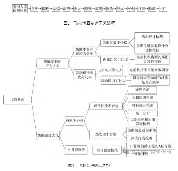 飛輪齒圈的材料為45號鋼,供應(yīng)商的制造工藝流程如圖2所示。為查找齒圈斷齒原因,采用二分法進(jìn)行FTA,如圖3所示。