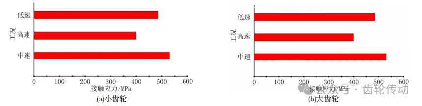 齒面接觸應(yīng)力的大小和很多因素有關(guān),如輪齒載荷、齒面相對(duì)曲率、摩擦因數(shù)和潤(rùn)滑狀態(tài)等。依據(jù)齒面接觸應(yīng)力的赫茲應(yīng)力計(jì)算方法,進(jìn)行接觸疲勞強(qiáng)度計(jì)算,應(yīng)力表達(dá)式為