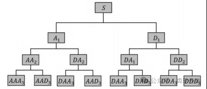 小波包分析原理:鑒于變速箱故障診斷信號的非平穩(wěn)特性,振動信號中蘊(yùn)含了豐富且關(guān)鍵的故障特征信息。因此,為了深入挖掘并準(zhǔn)確解析這些特征,對軸承故障診斷信號實(shí)施更為精細(xì)的分解與分析顯得尤為重要。這一處理過程旨在從復(fù)雜的信號波動中提取出細(xì)微的故障跡象,為后續(xù)的診斷提供堅(jiān)實(shí)的數(shù)據(jù)基礎(chǔ)。小波包分析方法通過同時(shí)處理信號的低頻和高頻部分,相當(dāng)于 在信號處理中引入了高通濾波器和低通濾波器的功能,提供了更全面的信號頻譜信息。在初始階段,對原始信號進(jìn)行第一層小波包分解, 得到兩部分信號:低頻成分和高頻成分。這一分解過程為提取信號的粗略特征奠定了基礎(chǔ)。接下來的第二層分解將這兩部分信號進(jìn)一步細(xì)化,使低頻信號和高頻信號各自被分解成更多的頻率段。這一過程細(xì)化了每個頻帶內(nèi)的特征,揭示了信號中更細(xì)微的變化和特征。理論上,隨著分解層級的增加,小波包分析能夠逐步展現(xiàn)原始信號在更廣泛頻帶范圍內(nèi)的詳細(xì)信息。這種逐層深入的分析方式允許捕捉信號的各種頻率成分, 提供更精細(xì)的頻譜特征。這不僅幫助人們更準(zhǔn)確地理解信號的頻率特征,還為后續(xù)的信號處理和故障檢測提供了豐富的數(shù)據(jù)支持。圖1展示了小波包分析在第3層分解時(shí)的樹狀結(jié)構(gòu)圖, 直觀地展示了信號分解的層次和頻帶劃分的精細(xì)程度,為后續(xù)的信號分析和故障診斷奠定了堅(jiān)實(shí)的基礎(chǔ)。
