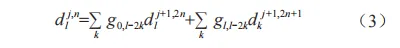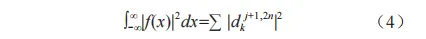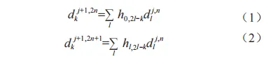 式中,dlj,n為 第 j 級小波包系數(shù);dlj+1,n為第j+1級小波包系數(shù);h0,2l-k、hl,2l-k為分解系數(shù);g0,l-2k、gl,l-2k為重構(gòu)系數(shù)