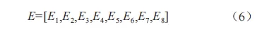 小波包特征能量提?。翰捎胐b3小波基對4 種不同狀態(tài)的信號進(jìn)行3層小波包分解,可以得到8個不同頻帶的信號特征。為了實(shí)現(xiàn)對信號的有效降噪,首先需要對這8個信號特征進(jìn)行重構(gòu),并計(jì)算各個頻段的能量值,這些能量值分別標(biāo)記為E1至E8 。通過將這8個頻帶的能量值組合成一個能量特征向量,能夠?yàn)樾盘柕暮罄m(xù)分析和處理提供有用的特征信息。在具體操作中,重構(gòu)過程確保了信號的降噪效果,通過精確計(jì)算每個頻段的能量值,能夠提取出信號在不同頻帶上的重要特征。這些能量值反映了信號在各個頻段的能量分布情況,因此,它們對于信號的故障檢測和診斷至關(guān)重要。圖3展示了不同故障狀態(tài)下信號的頻段能量分布情況,直觀地呈現(xiàn)了各個頻段的能量特征及其在不同故障條件下的變化。這些信息可以用于進(jìn)一步分析和識別不同的故障模式。