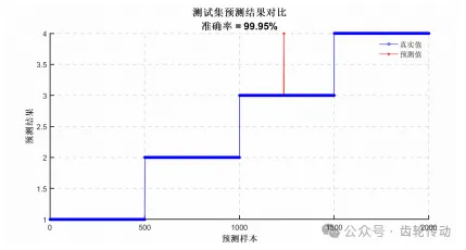 從圖5中可以看出,本文的測試集樣本總數(shù)為2000個。BP神經(jīng)網(wǎng)絡(luò)的診斷算法在這些測試樣本上的識別率達(dá)到了99.95%,這充分表明了該算法在故障診斷中的高效性和準(zhǔn)確性。這一結(jié)果驗(yàn)證了模型在處理實(shí)際數(shù)據(jù)時(shí)的出色性能,進(jìn)一步證明了其在實(shí)際應(yīng)用中的有效性。