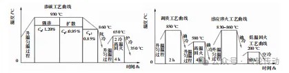 圖 1 滲碳、調質、感應淬火的工藝流程