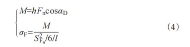 而齒根彎曲應力的評價標準是:齒根彎曲應力小于許用應力,即σF≤[σF]。