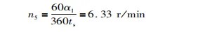 選擋軸:在擋位選擇過程中,換擋桿轉動角度α1為±l9°,選擋時間ts最大值為0.5s,錐齒輪轉速n5為: