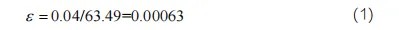 設計的液漲芯軸夾具的膨脹套外徑為φ63.5mm、內徑為58.5 mm,長度為96mm,加持工件內孔尺寸為φ63.5mm。工作時,膨脹套的變形為0.04mm,計算公式如下: