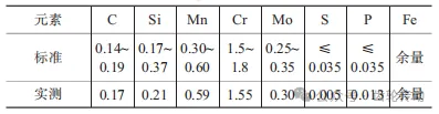 表1 齒輪化學成分直讀光譜分析結果(質量分數,% )