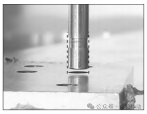 (4)相機(jī)離開,持有機(jī)器人標(biāo)定探針的末端執(zhí)行器在對(duì)準(zhǔn)標(biāo)定板上面的孔位,利用高清設(shè)備使得探針邊緣和孔位邊緣完全重合,記錄當(dāng)前9個(gè)點(diǎn)在機(jī)器坐標(biāo)系中位置信息,如圖11、圖12所示。