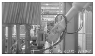 其中相機(jī),鏡頭和激光位移傳感器組成協(xié)同測(cè)量系統(tǒng),協(xié)同測(cè)量系統(tǒng)固定在桁架機(jī)器人上,可以對(duì)待加工齒輪進(jìn)行XYZ三個(gè)方向的立體測(cè)量,加工工位現(xiàn)場(chǎng)裝配圖,如圖5所示。