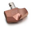 圖3 在可換頭鉆頭的鉆體與刀頭之間有安全的全新接口(專利申請中)。這提高了刀頭更換時的簡單性和安全性,并使刀頭可以精確地定位并獲得很好的支撐。刀頭只能以一種方式固定到鉆頭上,并用側面的螺釘鎖定住。沒有可能松動的部件,鎖緊是牢固的。對中是通過刀頭的導向銷和刀頭座內半圓柱接觸表面之間的接觸實現的。