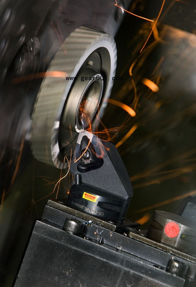 切削可以為連續或斷續切削,就如齒輪輪齒或軸特性一樣,通過選擇合適的刀片材質可以對此類切削進行最佳優化。表面質量通常可達到Rz 1或Ra 0.25 微米,尺寸公差保持在0.01 mm以內。采用高進給可獲得良好的表面光潔度:進給率為0.3 mm/r時,光潔度為Ra 0.3微米;進給率為0.4 mm/r時,光潔度可達Ra 0.5微米;進給率為0.5mm/r時,光潔度可達Ra 0.8微米。