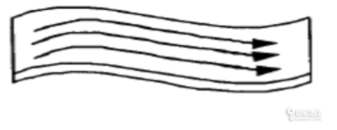 在航天整體結構件的大型復雜曲面高速切削加工中,曲面曲率變化大時,應以最大曲率半徑方向作為最優走刀方向,如圖2.1所示;曲面曲率變化小時,曲率半徑對走刀方向的影響減弱,宜選擇單條刀軌平均長度最長的走刀方向,如圖2.2所示。