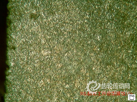 金相組織檢測表層馬氏體組織中,殘留奧氏體的含量最多為:10%~15%;組織表面應(yīng)是天鵝絨狀的細(xì)紋晶粒、發(fā)暗,晶粒周圍不得有滲碳體;根據(jù)UNI3245,奧氏體晶粒大小5-8級;表面脫碳的氧化層和屈氏體痕跡的最小層厚度(非馬氏體區(qū)域)允許最大15~20μm。