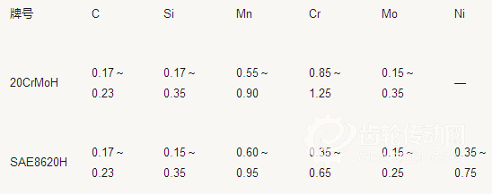 表1 20CrMoH與SAE8620H主要化學(xué)成分(質(zhì)量分?jǐn)?shù))要求(%)